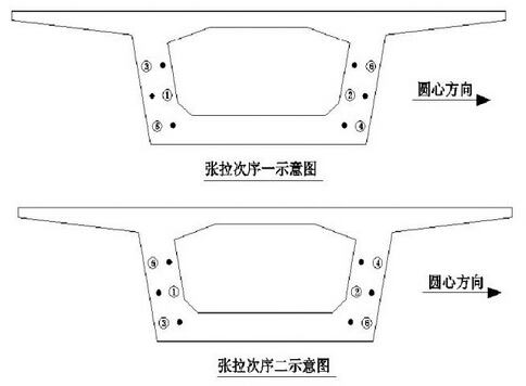橋梁預應力張拉分為先張法和后張法,先張,現在般都采用整體張拉,所以不存在張拉順序問題。后張要嚴格按照要求的張拉順序,主要是為了保證構件不造成偏心受力和預應力值符合設計要求。張拉順序應符合設計要求,當設計未規定時采取分批、分階段對稱張拉。